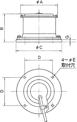 橡胶弹簧振动机(VG系列) ■标准式样:ゴムスプリングバイブレータVG形 形式 电压 (V) 周波数 (Hz) 振动数 (VPM) 冲击力 (kg) 电流(200V時) (A) 电压X电流 (VA) 重量 (kg) 適用制御器 (形式) VG-60 200/220 50/60 3000/3600 300 1.8 360 20 C4-5B VG-80 200/220 50/60 3000/3600 600 3 600 35 C4-5B ■外形尺寸图:ゴムスプリングバイブレータVG形